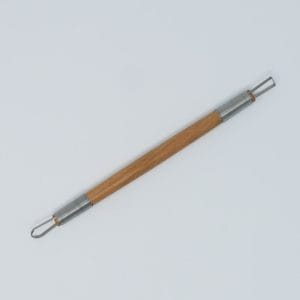 Modellerslynge med wire. Velegnet til at lave detaljer og mønstre i ler eller til udhuling af mindre emner. Slyngens ene ende har form som et rektangel, den anden har form som en parabel. Den har en længde på cirka 18 cm og er cirka 1 cm tyk på midten.